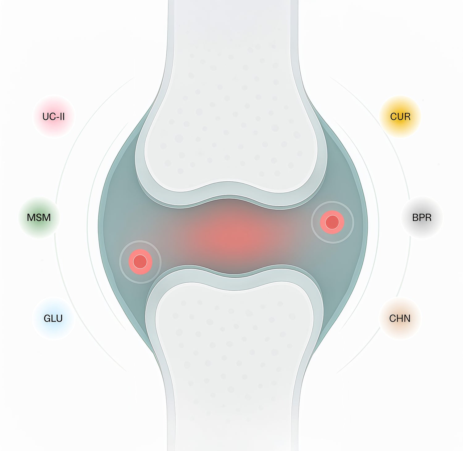 "Retrains" immune cells to stop over-reacting to joint cartillage, easing long-term irritation and supporting smoother movement.
