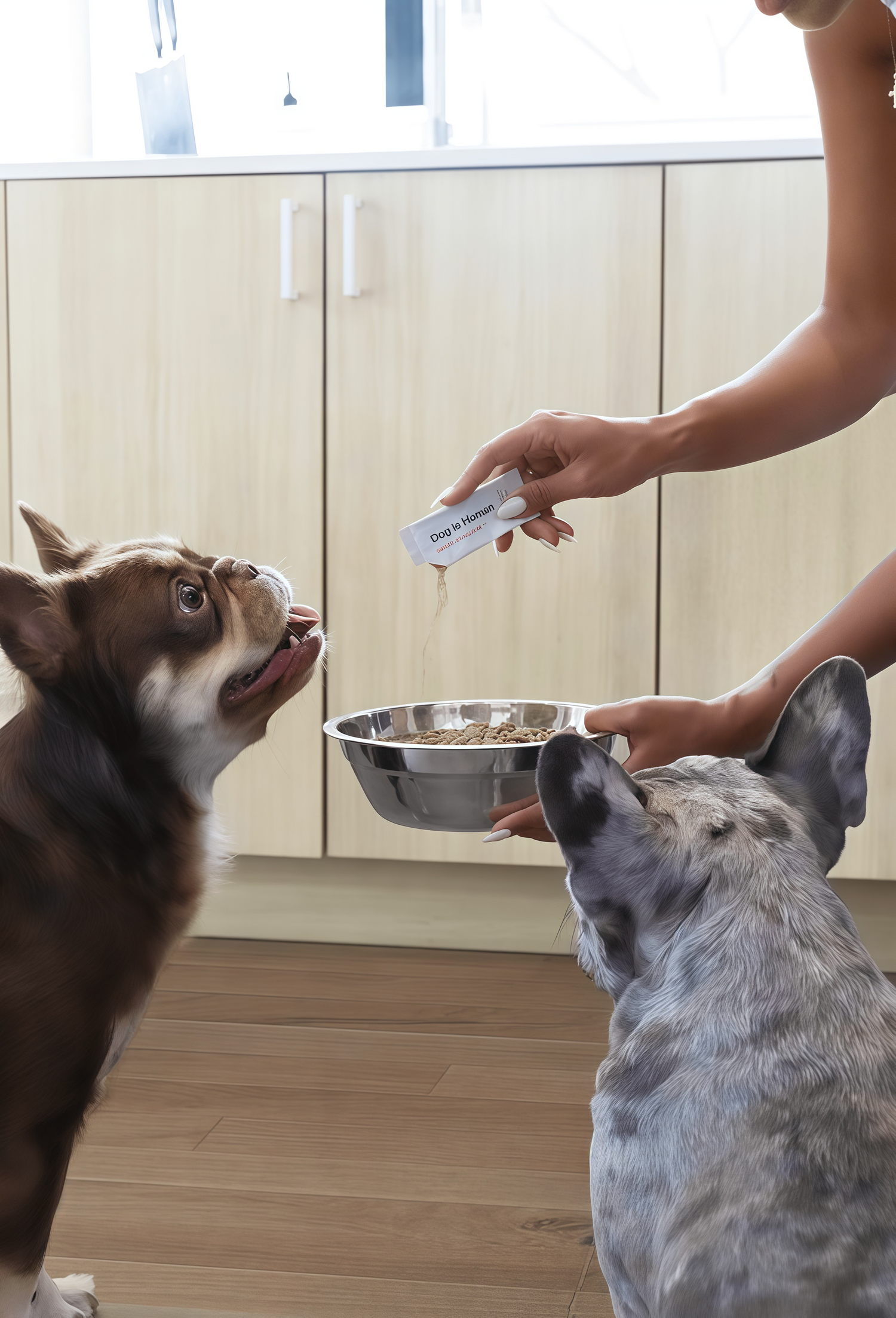 Simply sprinkle the recommended daily amount over your dog’s food. Most dogs enjoy it and won’t even notice it’s there.