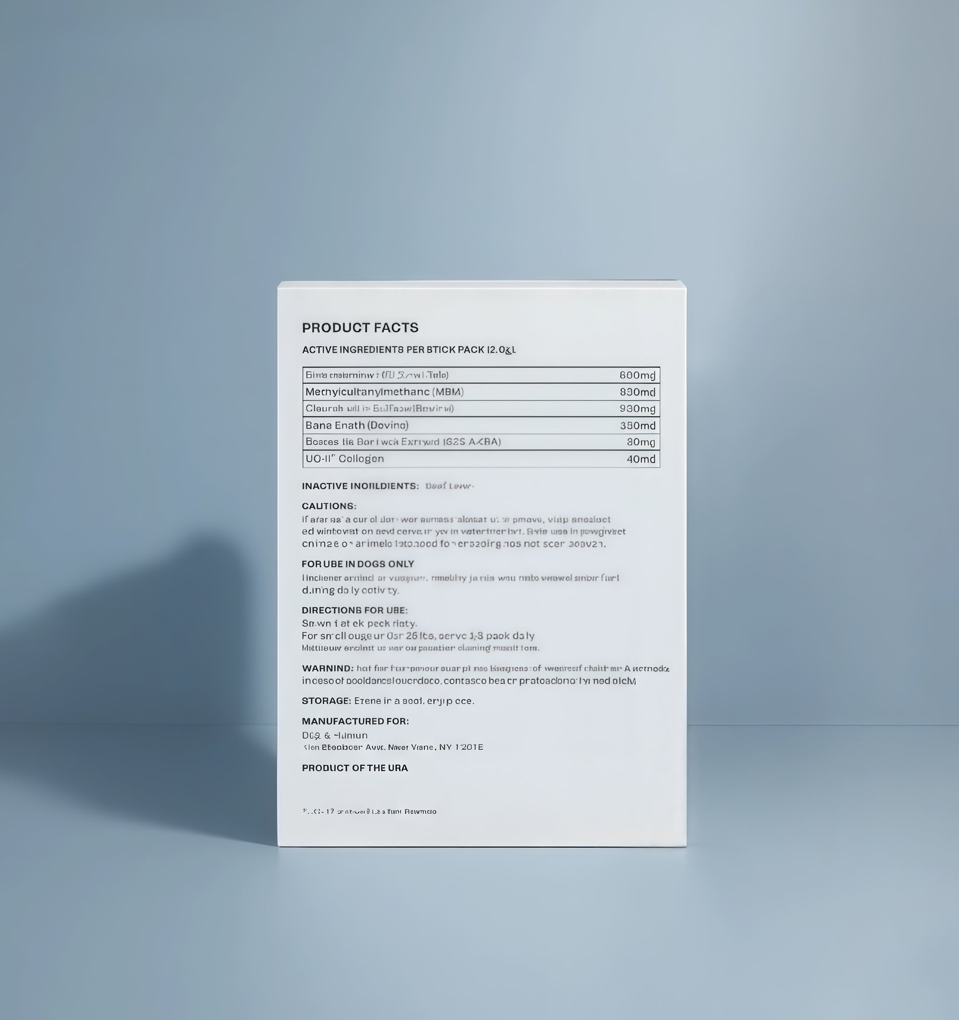 Supplies natural collagen, amino acids, and sulfur compounds from bone broth and MSM — reinforcing tendons, ligaments, and cartilage so joints stay stable and resilient with every step.